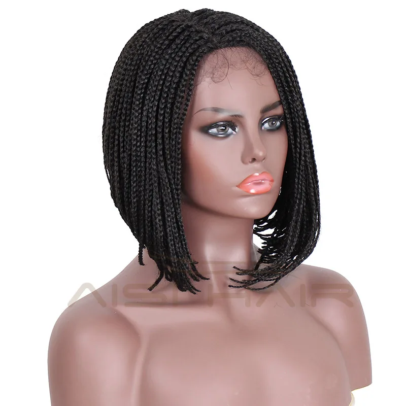 Source Aisi Hair Short Micro Box Braids Lace Front Bob Wig Part Side Synthetic Glueless Heat Resistant Lace Front Wigs For Black Women On M Alibaba Com